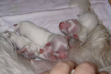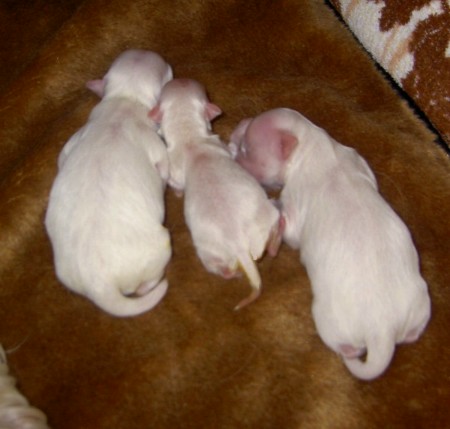 ein Mädchen mit 149 gr. um 5.50 Uhr, dann einen Rüden von 117 gr. um 6.07 Uhr und ein Klitzekleines Mädchen von 75 gr. um 6.24 Uhr geboren. Die Kleinste ist wohl ein “Frühchen” und geniesst