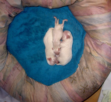 Ende 1. Woche Kontaktliegen in der “Wahlheimat” von Mama Murmel...Murmel wollte ihre tolle Wurfkiste absolut nicht haben und schleppte die Babys in dieses