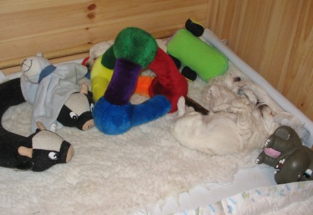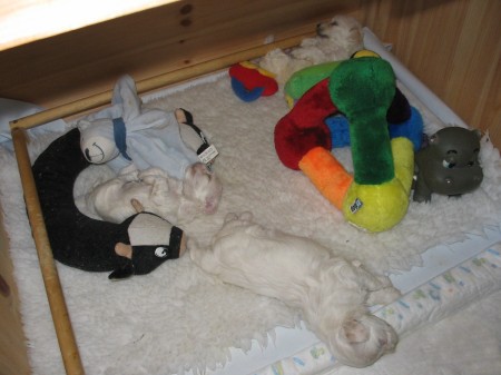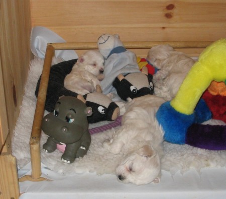 D-Wurf Mitte 5. Woche Na wieviel Welpen sind auf jedem Foto zu sehen???