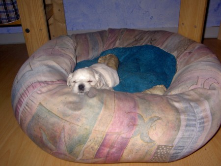 Das ist aber ein schöner Schlafplatz! Der ist jetzt meine, wieso nein, der gehört den Großen??? Ach manno der gefällt mir aber echt gut... |