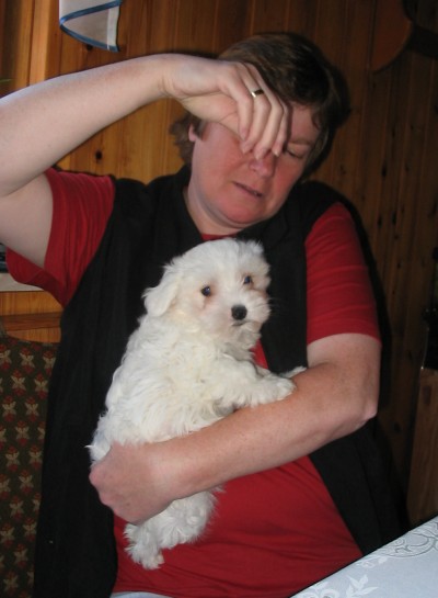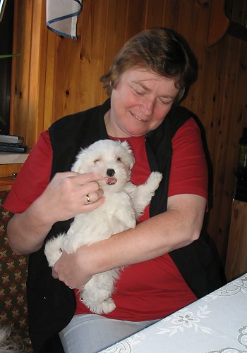 F-Wurf 11. Woche Nelly bekommt Besuch von ihrem neuen Frauchen und Herrchen.