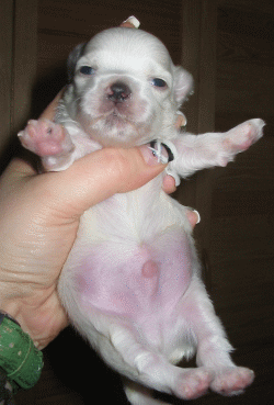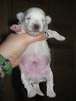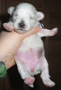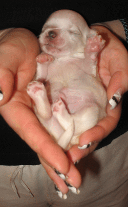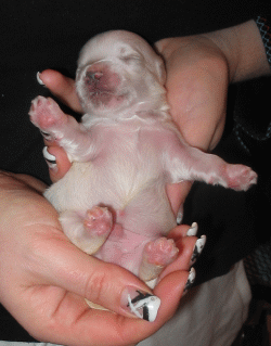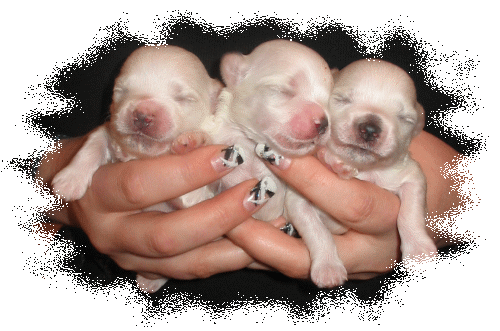 Nun zum Ende der Woche die Hunde in der gleichen Reihenfolge! Schaut diese Veränderung. Der Kleine hat bereist beide Augen auf, der dicke Kerl beginnt gerade die Augen zu öffnen und das Mädchen ist noch faul! |