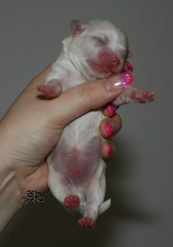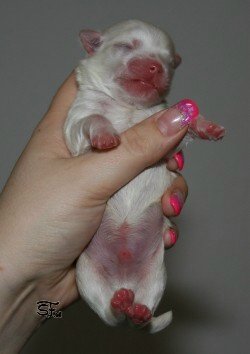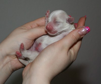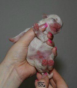 Die unteren drei Bilder sind der erstgeborene Rüde! Der am 19.03. bereits 206 Gramm wog! |