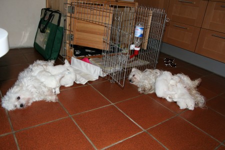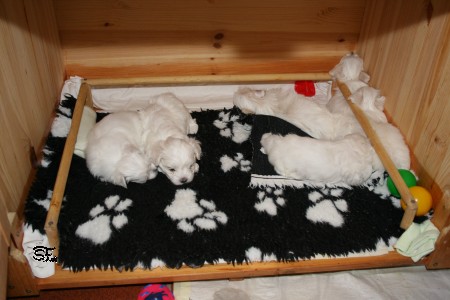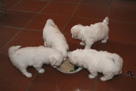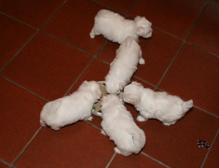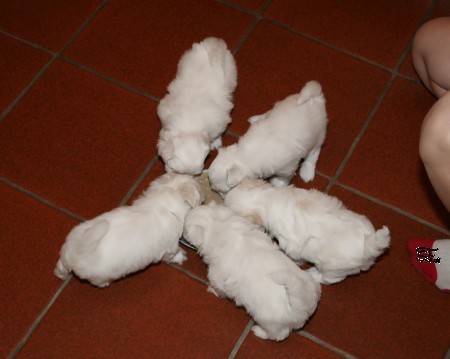 I-Wurf 5. Woche Alle sind umgezogen in die große weite Küche und haben mächtig Hunger.