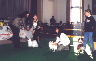 Meitingen 2003 -Geschafft, endlich mal den ersten Platz. Da war die Freude riesig und stolz waren wir allemal! So sieht ein glücklicher Sieger aus, nur der Hund hatte keine Lust mehr, bei so viel Stress!
