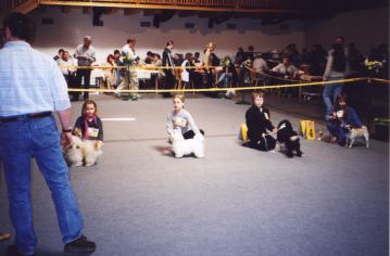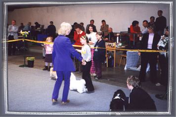 Hier müssen die Juniorhandler der Richterin das Gangwerk ihres Hundes vorführen!