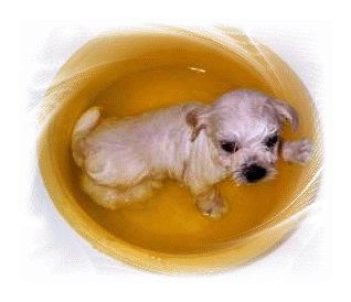 Also das ist vielleicht eine verrückte Woche. Mama meint ich rieche etwas unangenehm. Na und, ist doch gut so! Und was passiert? Da stopft die mich in so ein nasses Zeug und rubbelt an mir rum. Pfui!!! |